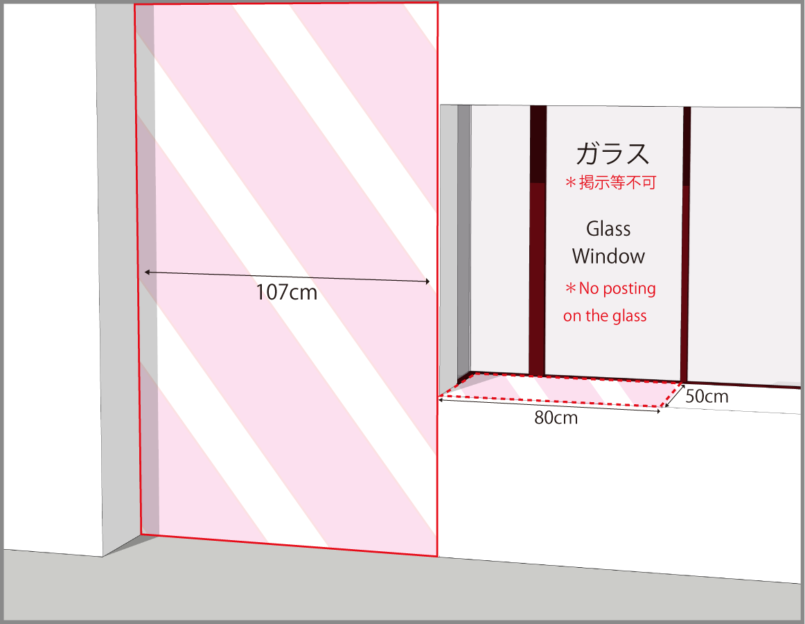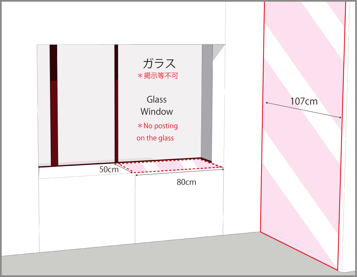 各ブースで定められた壁の境界は越えないように展示して下さい。